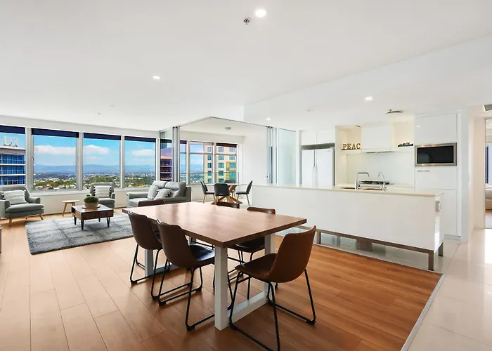 Doté d'équipements indépendants comme une cuisine équipée, cette propriété Qtower 2Br Apt Pool & Gym, 6 Guests, Beach Walk dispose également un coin repas où les clients peuvent se détendre et savourer leurs repas. Bien relié à de nombreux sites touristiques, l'appartement se trouve à côté de la gare routière Greyhound Terminal Surfers Paradise. Un jacuzzi et un sauna disponibles à l'appartement garantissent une expérience agréable. Maintenez votre routine d'exercice sans effort dans un centre de fitness proposée par l'hôtel Hilton.